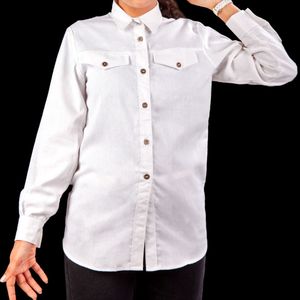 - مدل جلو بسته یقه گرد: برخی افراد استخوانهای ترقوه بسیار زیبا و برجستهای داشته و اغلب قصد دارند تا مرکز زیبایی خود را به این سمت منعطف کنند از این رو شومیز و پیراهنهایی را انتخاب میکنند که یقه بازتری داشته باشد. در این مدل آستینها بر روی بازو و شانه قرار گرفته و خط میانی یقه از دو آستین چپ و راست پایینتر است. این مدل از نظر نوع پارچه مانتو شومیزی، چندان محدودیتی نداشته و شما میتوانید از انواع پارچههای گاباردین، لینن، جین و… برای دوخت آن استفاده کنید.
