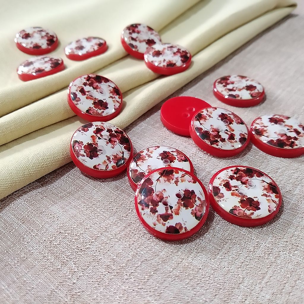 دکمه دو سوراخه گلدار قرمز کد D104 سایز 2