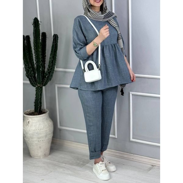 ست شومیز و شلوار جلو چین دافنه کد 3850