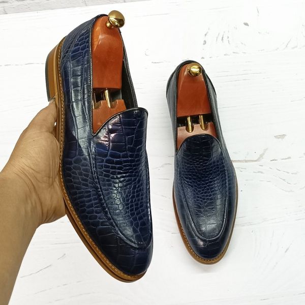 کفش مردانه کالج چرم طبیعی دست دوز کاپری کروکودیلی سرمه ای
