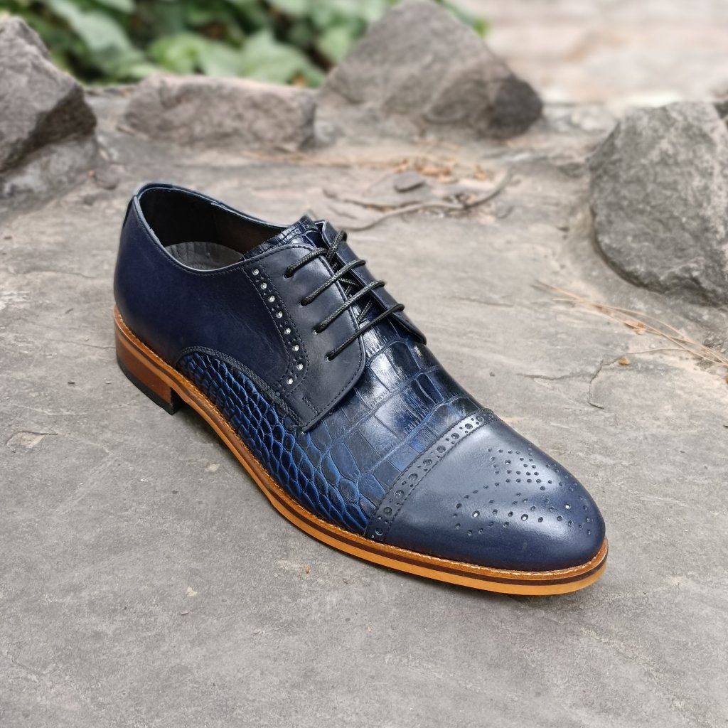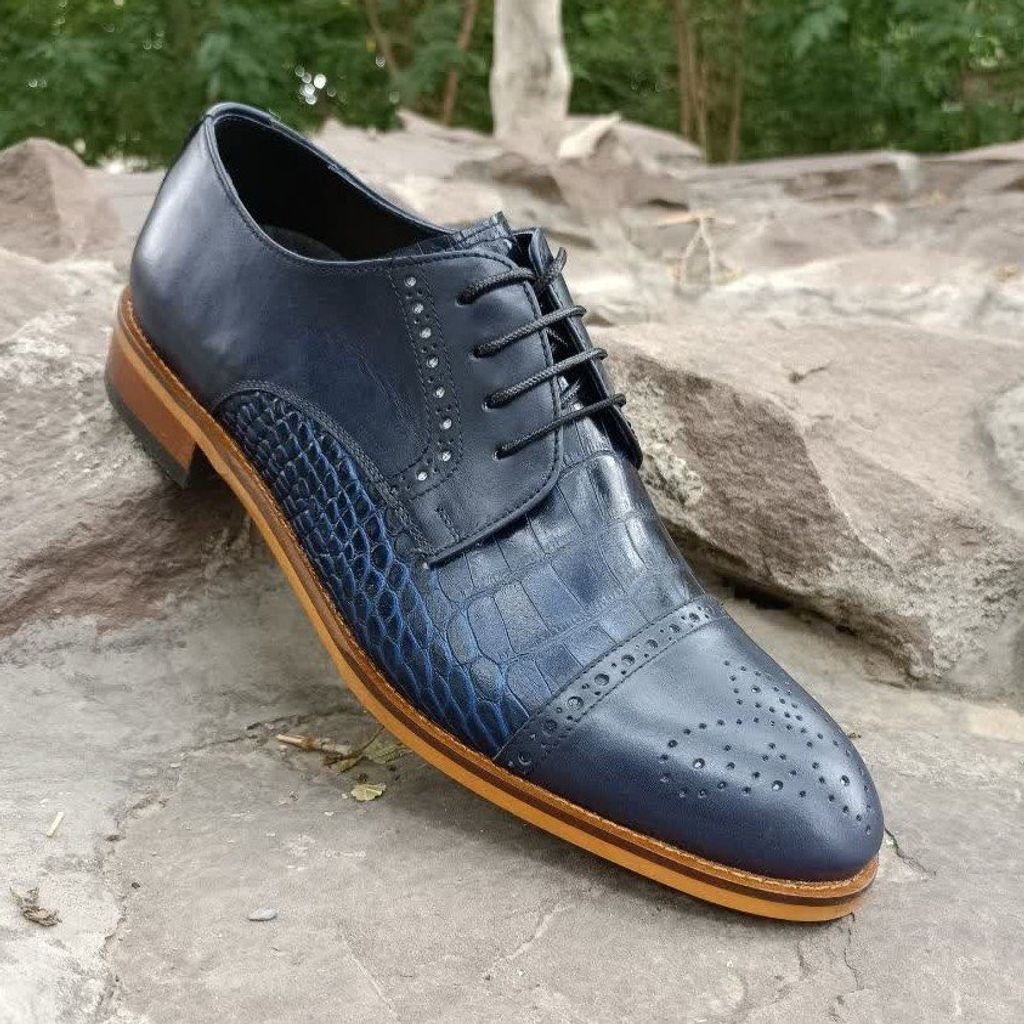 کفش مردانه مجلسی چرم طبیعی مدل کارلو کروکودیلی سرمه ای