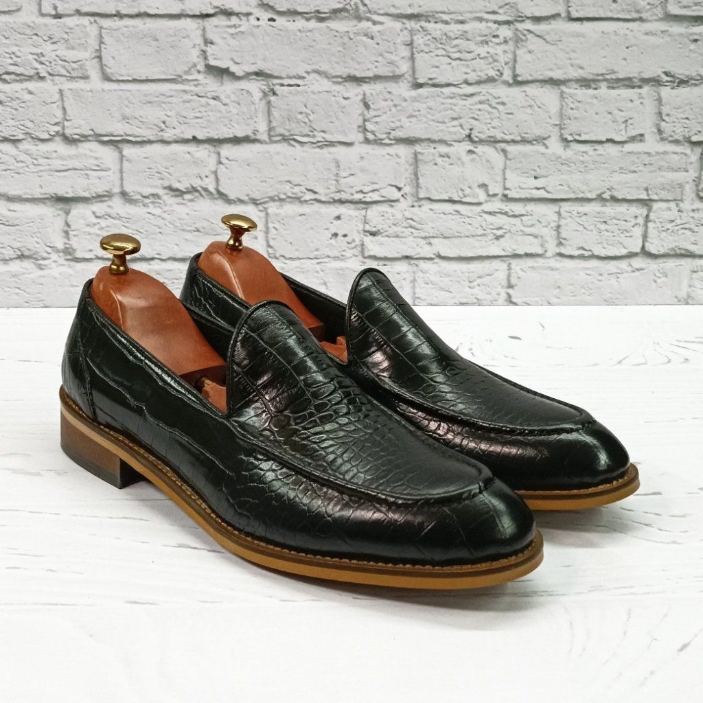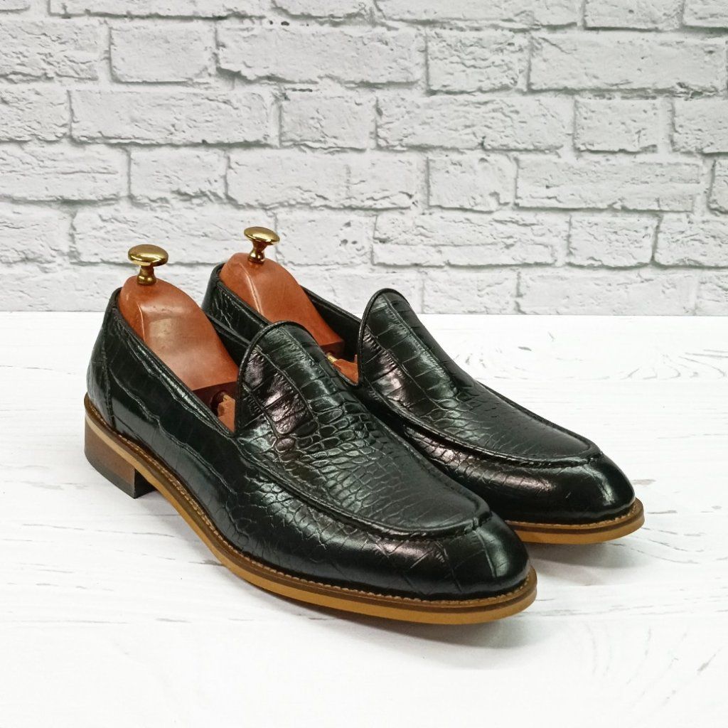 کفش مردانه کالج چرم طبیعی دست دوز کاپری کروکودیلی مشکی