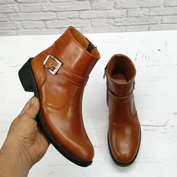 نیم بوت زنانه اسپرت چرم طبیعی مدل کاترین عسلی
