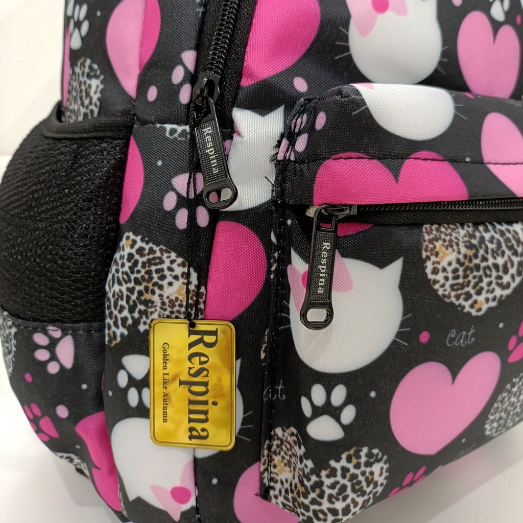 کیف مدرسه دخترانه مدل قلب و گربه heart cat با جامدادی (برند رسپینا)