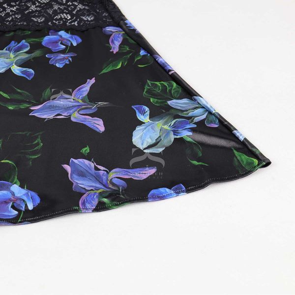 در این محصول دو پارچه دانتل و استرچ ساتنی به کار برده شده است .در قسمت کاپ لباس خواب لایه ای از استرچ ساتنی در داخل کاپ دوخته شده که به حفظ فرم سینه ها کمک میکند و بدن نما نیست بند سر شانه لباس خواب قابل ریگلاژ میباشد که از قسمت پشت قابل تغییر است .