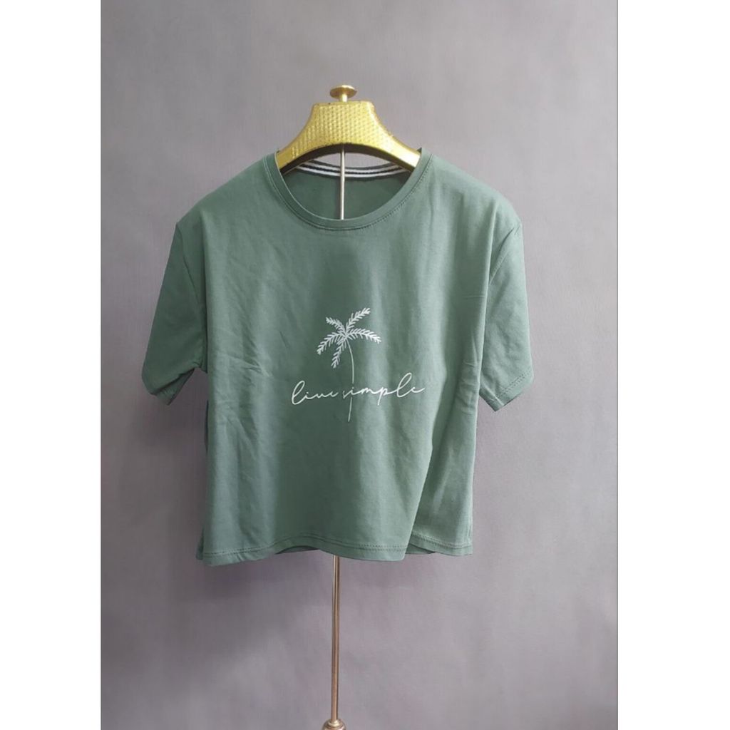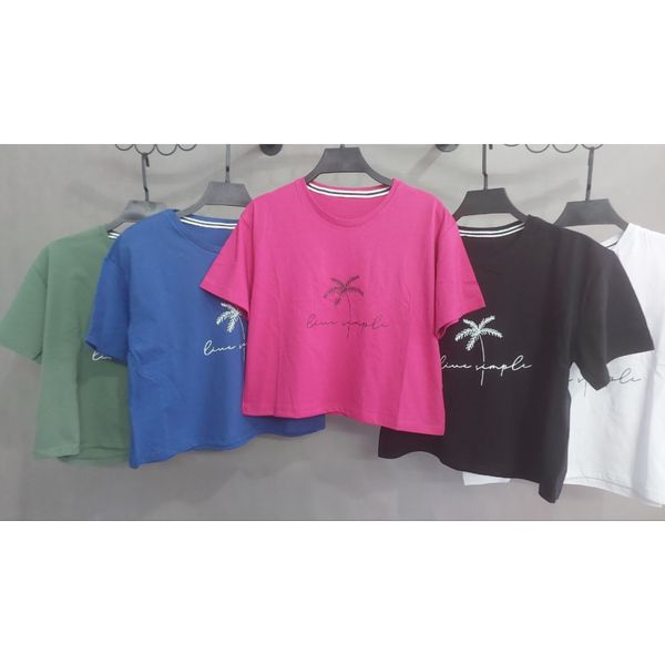 تیشرت زنانه کراپ نخ پنبه فانتزی طرح نخل کد 362