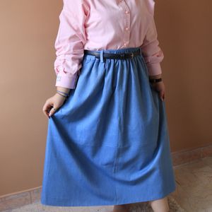 کمر دامن کش هست و تا110سانت در حالت کشیده است و پل داره واسه کمربند