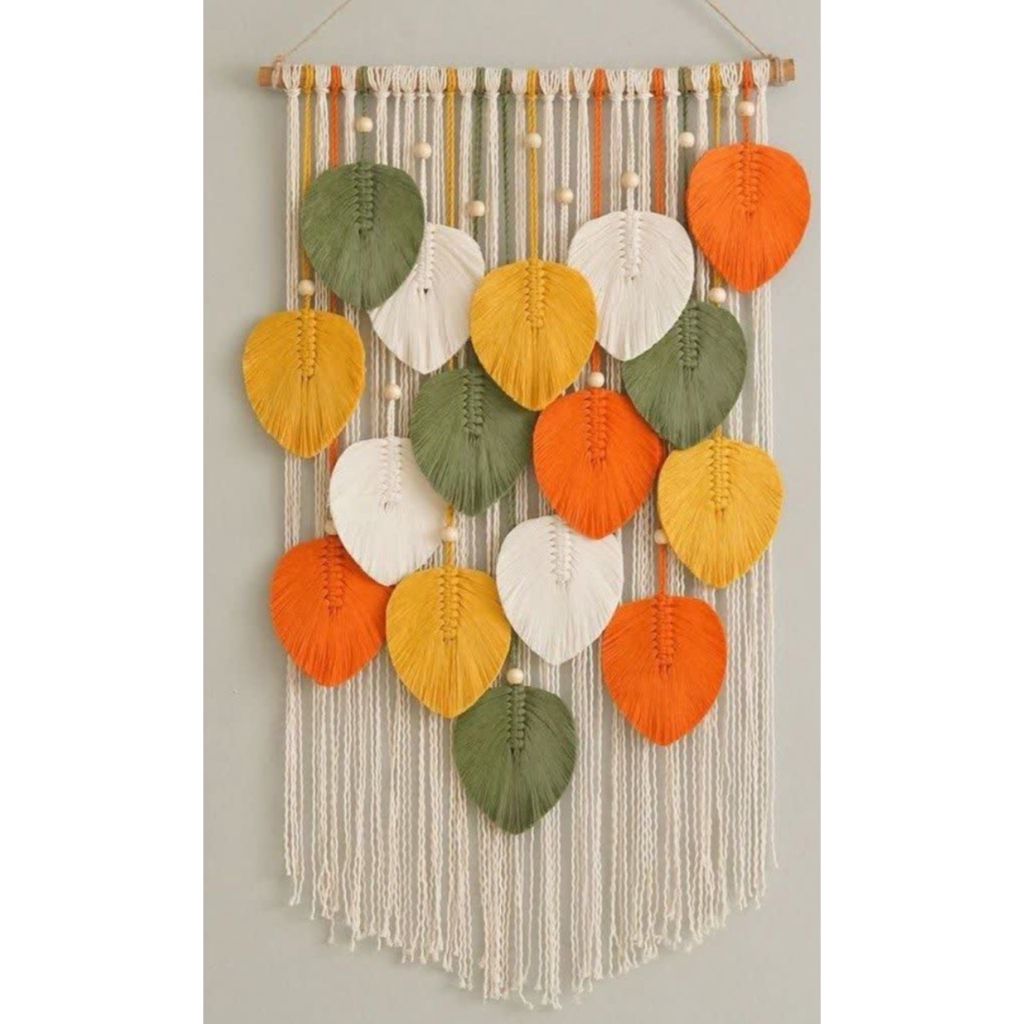 دیوارکوب برگ مکرومه دیزاین منزل رنگ دلخواه جنس نخ پنبه مکرومه اعلا سایز حدود 50س